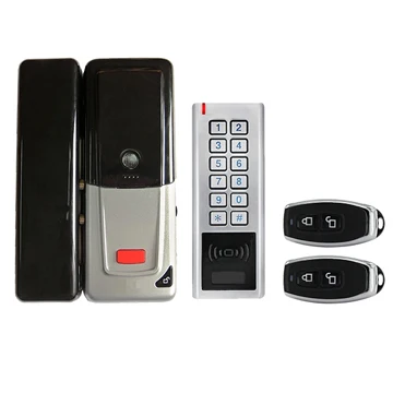 FV-D4 is a wireless smart lock kit for glass door use, it includes wireless keypad (metal, waterproof) + Wireless Lock + two Remote Transmitters.